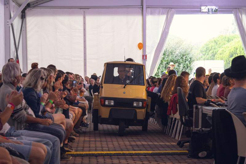 Eine Attraktion in der Woche war das Piaggio APE. Das Kernteam hatte es letzten Herbst gekauft und es als Werbeträger in den Kirchen eingesetzt. Anfang Juni absolvierte das Team damit eine Challenge, innert 36 Stunden 40 der teilnehmenden Kirchen zu besuchen. Mehr und mehr wurde das Piaggio zum Symbol für Lebensfreude, zauberte es doch überdurchschnittlich vielen Leuten ein Lächeln auf die Lippen beim Vorbeifahren. Es begleitete die Teilnehmenden daher auch während der ganzen Ferienwoche. In den Plenar-Gottesdiensten diente es für tiefgründige Kurzinputs, aber auch nachmittags war es da, sei es für eine Gratisrunde Getränke, eine Seifenblasenfahrt für die Kinder oder als Programm-Unterstützung bei diversen Angeboten. Am Freitagabend wurde es versteigert und verbreitet nun weiter Lebensfreude. Der Erlös aus der Versteigerung geht ans neue Jugendfestival «Melo», ebenso wie die Kollekte vom Freitagmorgen.